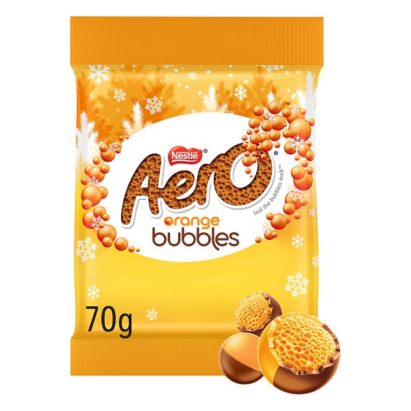 With a smooth half milk chocolate, half orange flavoured shel covering a light, bubbly orange flavoured centre - AERO® Orange Bubbles are perfect for sharing moments between friends and family at Christmas. What makes AERO so deliciously special? It's the chocolate bubbles that are designed to melt effortlessly in your mouth. AERO® is a much-loved chocolate brand and is famous worldwide for its unique, bubbly texture, and has been for decades. When it's time for a treat, pick up an AERO® and feel the bubbles melt™.