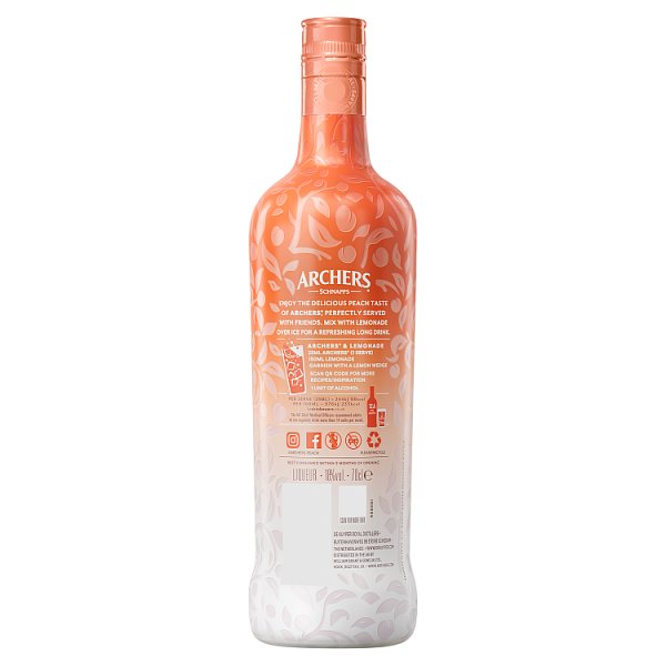 Please note the Archers botte has a fresh new look so the bottle you receive may vary. The legendary peach liqueur that’s been bringing vibrant, fruity flavour to drinks for decades. Archers is all about smooth, juicy refreshment. With its deliciously sweet peach taste, it’s made for those who love easygoing, flavourful drinks that always hit the spot. However you enjoy it, Archers is the perfect pick for any moment. SERVE SUGGESTION Archers & Lemonade: 25ml Archers, 150ml Lemonade. Add all ingredients into a highball glass, add ice, stir gently to mix ingredients, garnish with a lemon wedge. Enjoy. TASTING NOTES Fresh authentic smooth sweet peach taste. FEATURES • Archers is an easily mixable peach liqueur that will give your cocktail a refreshing and fruity peach taste! • Archers – the iconic peach liqueur that brings fruity refreshment to every occasion. • Smooth, juicy, and made to mix. However you drink it, Archers is the perfect pick for any moment! • Looking for the perfect cocktail to serve your guests? Got a party and want to make lasting impression? • Whether it is a Archers Lemonade or Woo Woo, with Archers you make the perfect cocktails for every occasion.