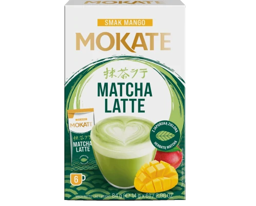 MOKATE MATCHA LATTE MANGO: POWDERED DRINK BASED ON MILK AND GREEN TEA WITH MANGO FLAVOR 6*14G